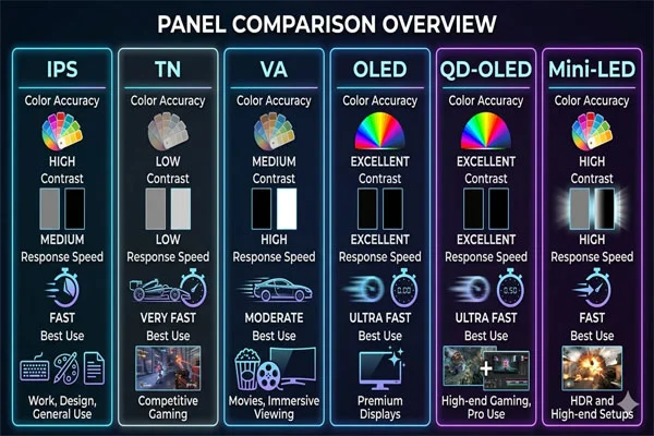 Choosing the right monitor panel plays a crucial role in screen performance, image quality, and overall user experience. Each panel technology is designed with specific strengths, making it important to match the panel type to its intended use, whether for work, gaming, or media consumption.
