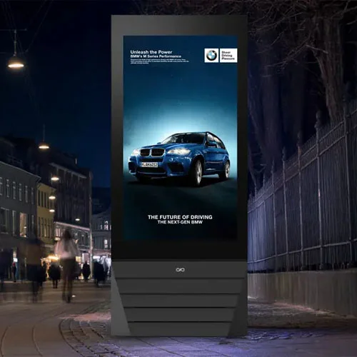 One Outdoor Advertising Totem It is a robust and self-contained digital signage solution designed for outdoor spaces. It combines bright LED screens with weather-resistant engineering to display vivid and dynamic content that captures attention in busy environments. Perfect for shop fronts, transport terminals and urban streets, it brings your message to life with reliable and long-lasting performance.