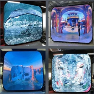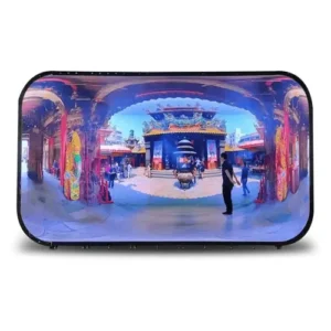 - Com um layout de 280 graus, as telas de LED externas proporcionam uma visão quase panorâmica que envolve o público. O campo de visão expandido, aliado ao alinhamento preciso do campo sonoro, cria uma sensação de presença realista. Este design torna cada cena mais envolvente e é especialmente adequado para produção virtual.