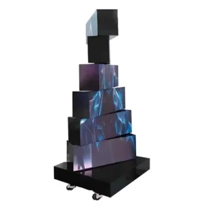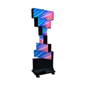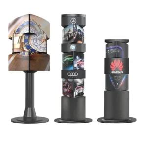 - Nossas Telas de LED Rotativas redefinem o impacto visual. Com um design multicamadas e superfície curva flexível, essas telas oferecem um amplo ângulo de visão e rotações hipnotizantes de 360°. O sistema de rotação inteligente integra diversos padrões de movimento para telas dinâmicas e chamativas que cativam qualquer público.
