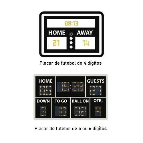 はい。当社のサッカースコアボードはすべて、試合のスコア、クォーター、残り時間を表示します。大型モデルでは、ダウン数、残りヤード数、ボール保持率、選手の統計情報などの追加データが表示される場合があります。