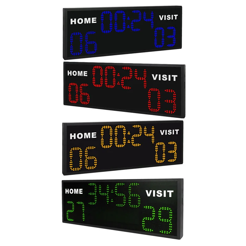 - 색상 옵션 – 팀 테마나 경기장 디자인에 맞춰 빨간색, 파란색, 노란색, 초록색 또는 여러 색상의 LED 숫자를 사용하여 스코어보드 디스플레이를 사용자 지정할 수 있습니다.