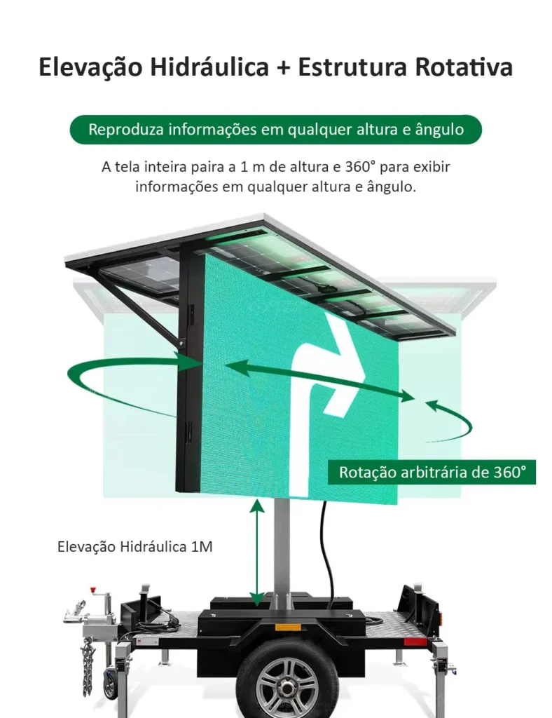 - Гидравлический подъем и вращение на 360° – Экран можно поднимать на высоту до 1 метра и вращать на 360 градусов, что позволяет отображать сообщения на любой высоте и под любым углом для максимального охвата аудитории.