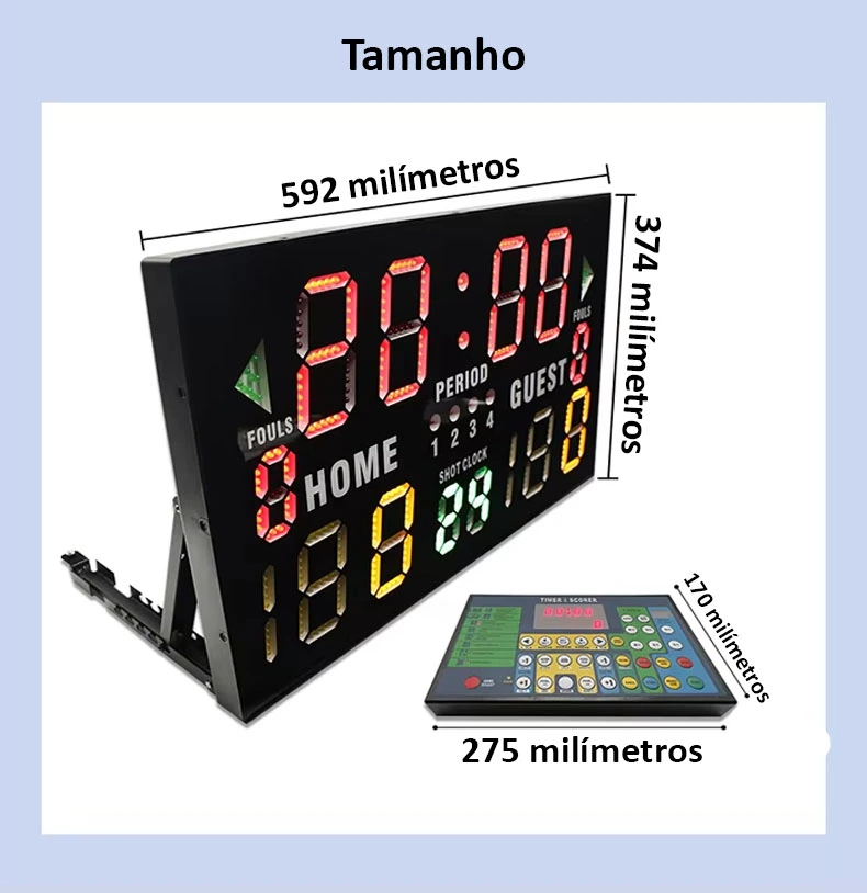 - Компактный размер и простота позиционирования – Это Электронное футбольное табло серии TEF Габариты: 592 x 374 мм, а пульт управления — 275 x 170 мм. Оба устройства лёгкие и компактные, что упрощает их транспортировку, хранение и установку на поле или площадке.