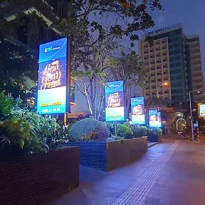 - Наш Светодиодный дисплей на столбе серии TWB Они разработаны для долговечности и производительности, обладают степенью водонепроницаемости IP65, широким углом обзора 140° и эффективной конструкцией с быстрым охлаждением. Они просты в ремонте и обслуживании, обеспечивают стабильное управление и экономию энергии, что делает их идеальными для использования на открытом воздухе, где требуется долговечное и качественное изображение.